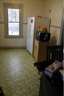 My boyfriend is the proud owner of his 1930s bungalow. It is the perfect sized home (about 1500 sq feet), and equipped with 3 bedrooms, 1.5 baths, and a wonderful "green" kitchen. Not exactly the green we want. We're talking green countertops, green floors, and we found green wallpaper that had been painted over.